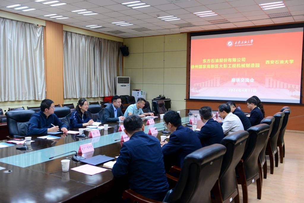 4月11日,由东方石油股份有限公司董事长、总经理刘浩,徐州国家高新区大彭工程机械制造园分管负责人、大彭镇党委委员、副镇长尹静静一行来校进行政、企、校合作交流。交流会在雁塔校区西阶第一会议室举行,学校党委副书记张木出席会议,合作发展处处长覃彪长主持了会议。