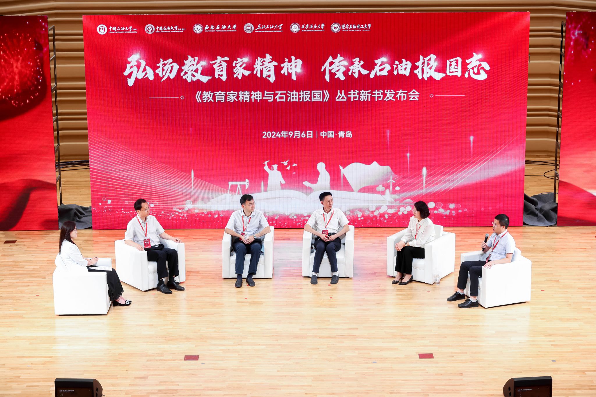 《教育家精神与石油报国》丛书由中国石油大学(华东)发起,全国12所石油院校共同编纂。丛书选取中国石油高等教育70多年发展过程中涌现的凸显教育家精神的名师代表,通过深挖其在理想信念、道德情操、育人智慧、科学研究、躬耕态度、仁爱之心、弘道追求等方面的先进事迹,形成专题纪念文章。本次发布的丛书包括中国石油大学卷、西南石油大学卷、西安石油大学卷、东北石油大学卷共四卷五册,共计168万字,记载了214位名师大家、7个教师团队为党育人、为国育才的生动故事,展示了他们弘扬教育家精神的生动实践。