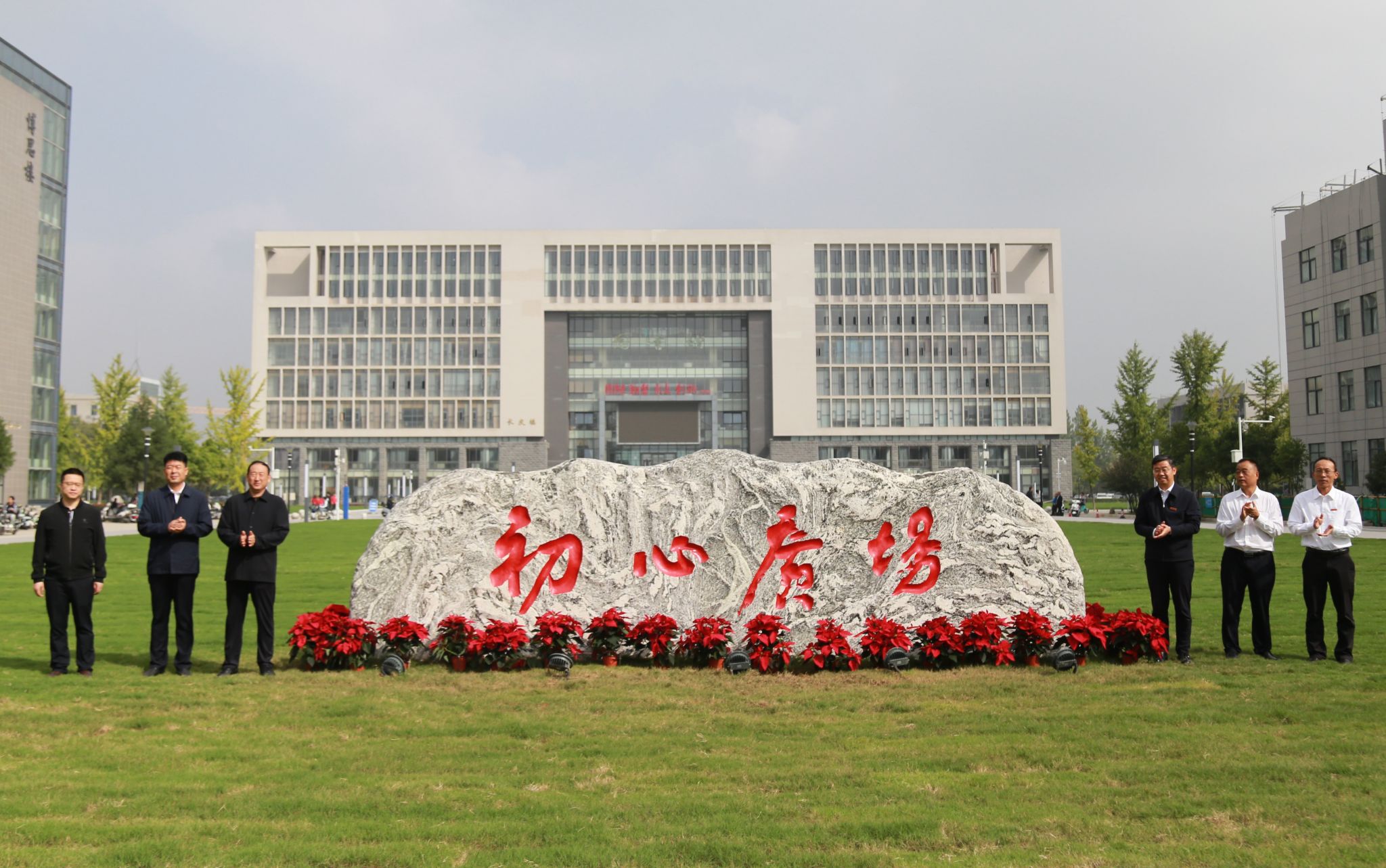 9月25日上午,学校在鄠邑校区图书馆南侧举行初心广场揭幕仪式。杨小平先生个人代表曹青,中铁十五局集团有限公司西北区域总部党委副书记、陕宁指挥部指挥长田胜利,陕西渤瞬新能源有限公司董事长兰喜茗等捐(参)建单位代表,我校校长王进富、校党委副书记程永清、副校长张君涛出席仪式。在鄠邑校区工作的处级干部及学生代表200余人参加活动。仪式由副校长赵健主持。