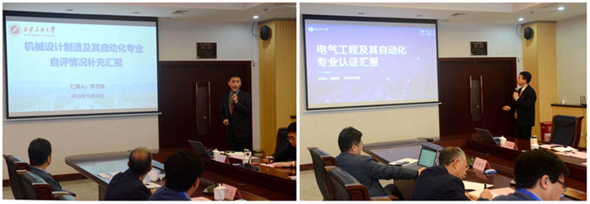 机械设计制造及其自动化、电气工程及其自动化专业负责人分别对专业的自评情况作了补充汇报。