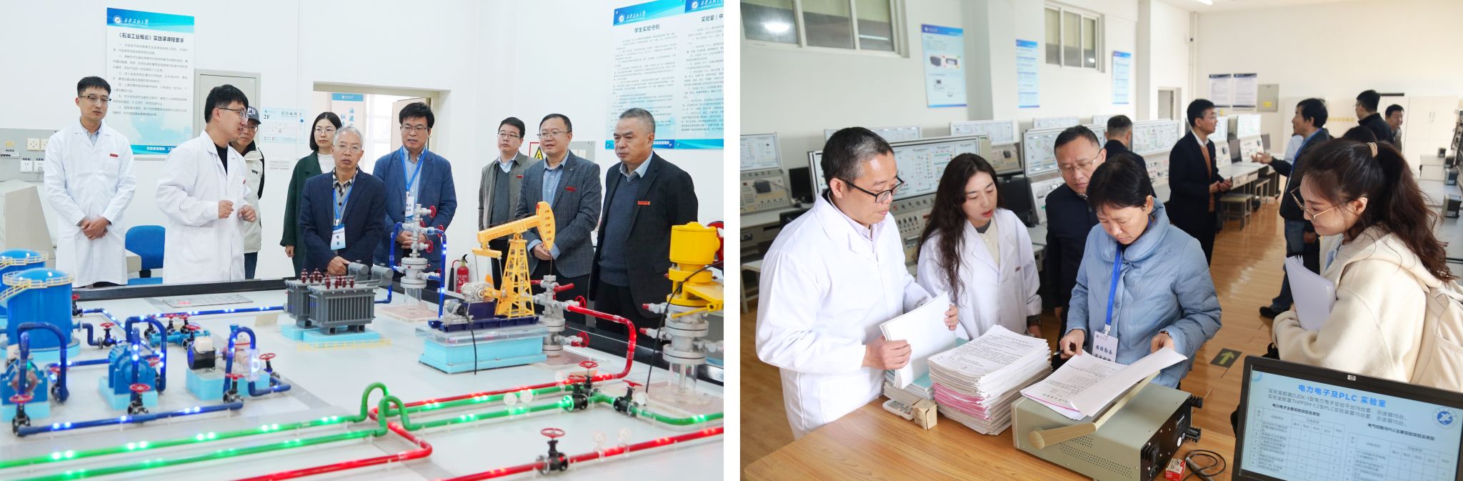 见面会结束后,专家组分组考查了铁人王进喜纪念馆、校史馆、图书馆、工程训练中心,以及机械设计制造及其自动化和电气工程及其自动化专业实验室,并就相关问题与专业教师进行了沟通和交流。