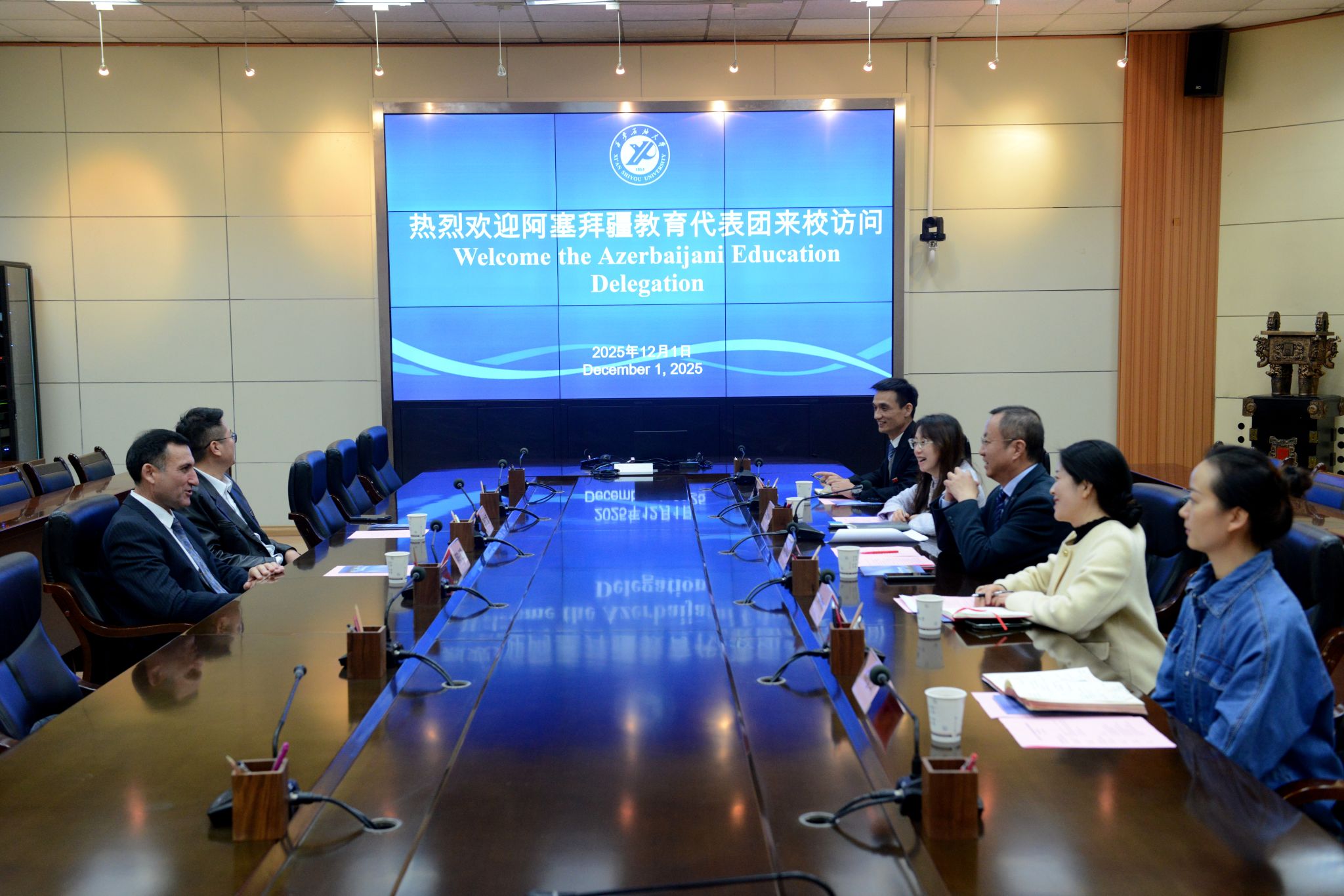 穆斯塔法・巴班雷先生对我校的热情接待表示感谢,高度肯定了两校在过往合作中取得的丰硕成果,分享了阿塞拜疆在能源教育领域的发展经验与合作愿景。他表示,共建“一带一路”倡议为中阿高校合作搭建了重要平台,希望以此次访问为契机,进一步推动两国高校在学术交流、师生互访等方面的务实合作,共同为能源领域人才培养贡献力量。
