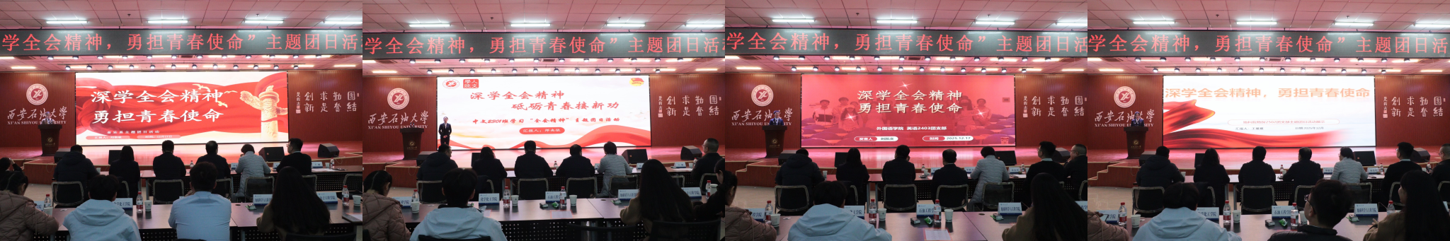 为引导团员青年深刻领会党的二十届四中全会精神核心要义,集中展示我校基层团组织风采和主题团日活动实效,发挥先进典型的示范引领作用,进一步激发全校团员青年的爱国热情与奋斗精神,12月17日晚,学校在鄠邑校区腾辉大学生活动中心举办“深学全会精神,勇担青春使命”主题团日活动展示,副校长种宇宏出席,相关职能处室负责人担任评委,各院(系)团委(团总支)书记及300余名学生代表参加活动。