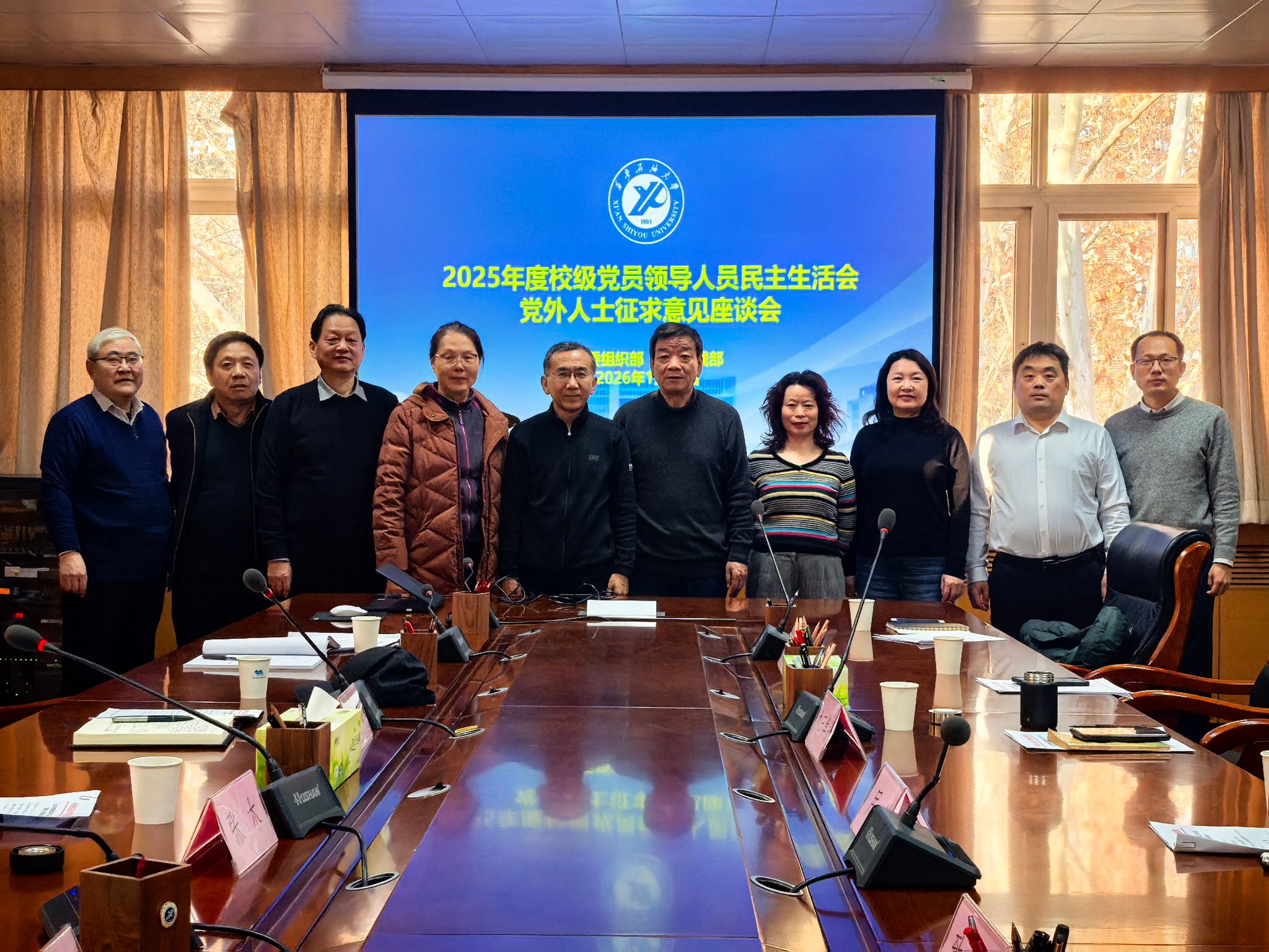 为深入贯彻中共中央纪委机关、中共中央组织部《关于开好2025年度县以上党和国家机关党员领导人员民主生活会的通知》精神,认真落实省纪委机关、省委组织部、省委教育工委有关要求,切实做好校级党员领导人员民主生活会会前征求意见工作,1月13日下午,我校在雁塔校区行政楼五楼会议室召开了2025年度校级党员领导人员民主生活会党外人士征求意见座谈会。校党委副书记张木出席会议,党委组织部有关负责同志、各民主党派主委、无党派人士代表参加座谈。会议由校党委委员、党委统战部部长吴复雷主持。
