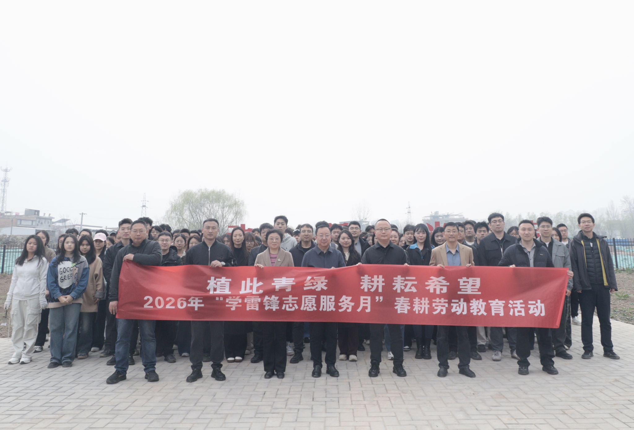 3月12日,正值第48个植树节,学校在鄠邑校区“开心农场”大学生劳动教育实践基地举办“植此青绿,耕耘希望”2026年“学雷锋志愿服务月”春耕劳动教育活动。副校长种宇宏出席活动并讲话,党委学生工作部、校团委、教务处、基建处、后勤处等相关单位负责人,各院(系)团委(团总支)书记、“开心农场”指导老师,“开心农场”总社学生代表,校青年志愿者协会、各院(系)青年志愿者协会负责人及志愿者代表300余人参加活动,以实际行动弘扬雷锋精神,播撒绿色希望,耕耘青春梦想。