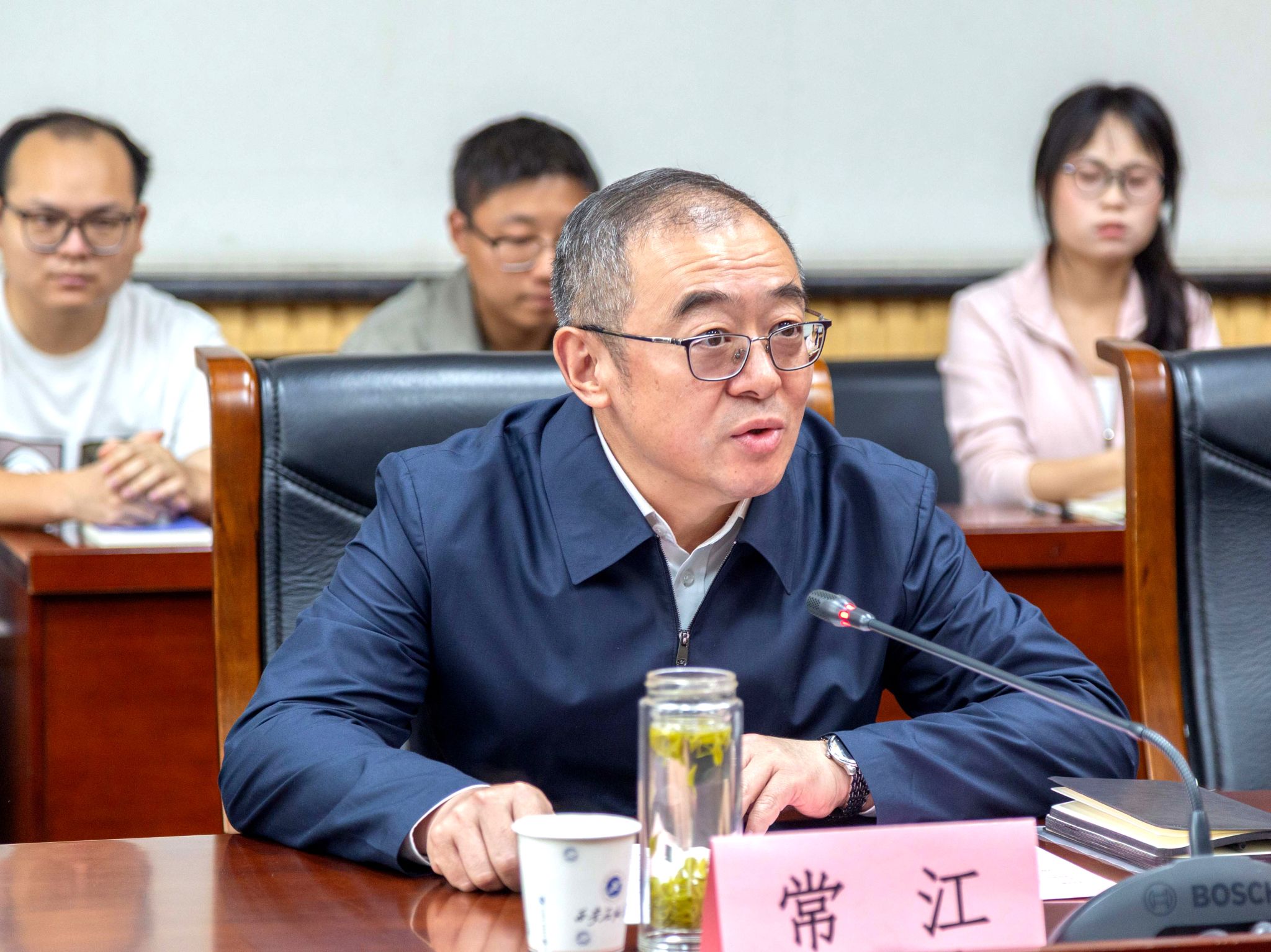 常江在致辞中对与会嘉宾的到来表示欢迎,并预祝签约取得丰硕成果。他指出,这场签约在陈忠实先生逝世十周年之际,逢陈忠实文学艺术馆开馆,既是致敬也是赓续。签约在以能源而兴的西安石油大学举办独具意义,能源强国既要重视专业的硬核实力,也要离不开文化滋养的人文情怀。学校坚持以文化人、以文育人,持续搭建文化平台、厚植人文氛围,以文学涵养青年,推动石油精神、铁人精神、延安精神与“文化西石大”建设同向同行。学校期待以本次活动为契机,进一步深化与文学界、出版界的交流合作,让更多优秀文学作品走进校园、浸润心灵,引导青年学子坚定心志,成长为兼具科学精神与人文情怀的时代新人。