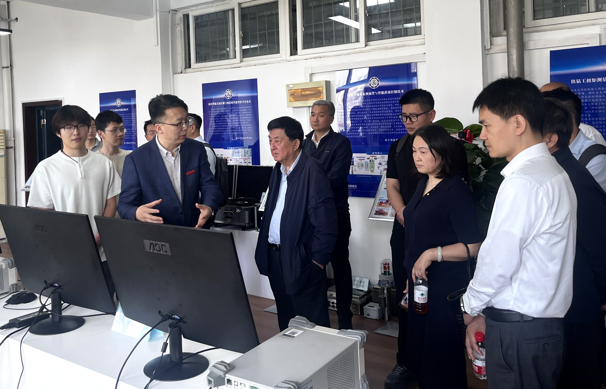 当日下午,与会专家及项目成员实地考察我校电子工程学院相关科研平台,展示了学院在智能钻井装备与控制技术方面的实验条件与研究成果。