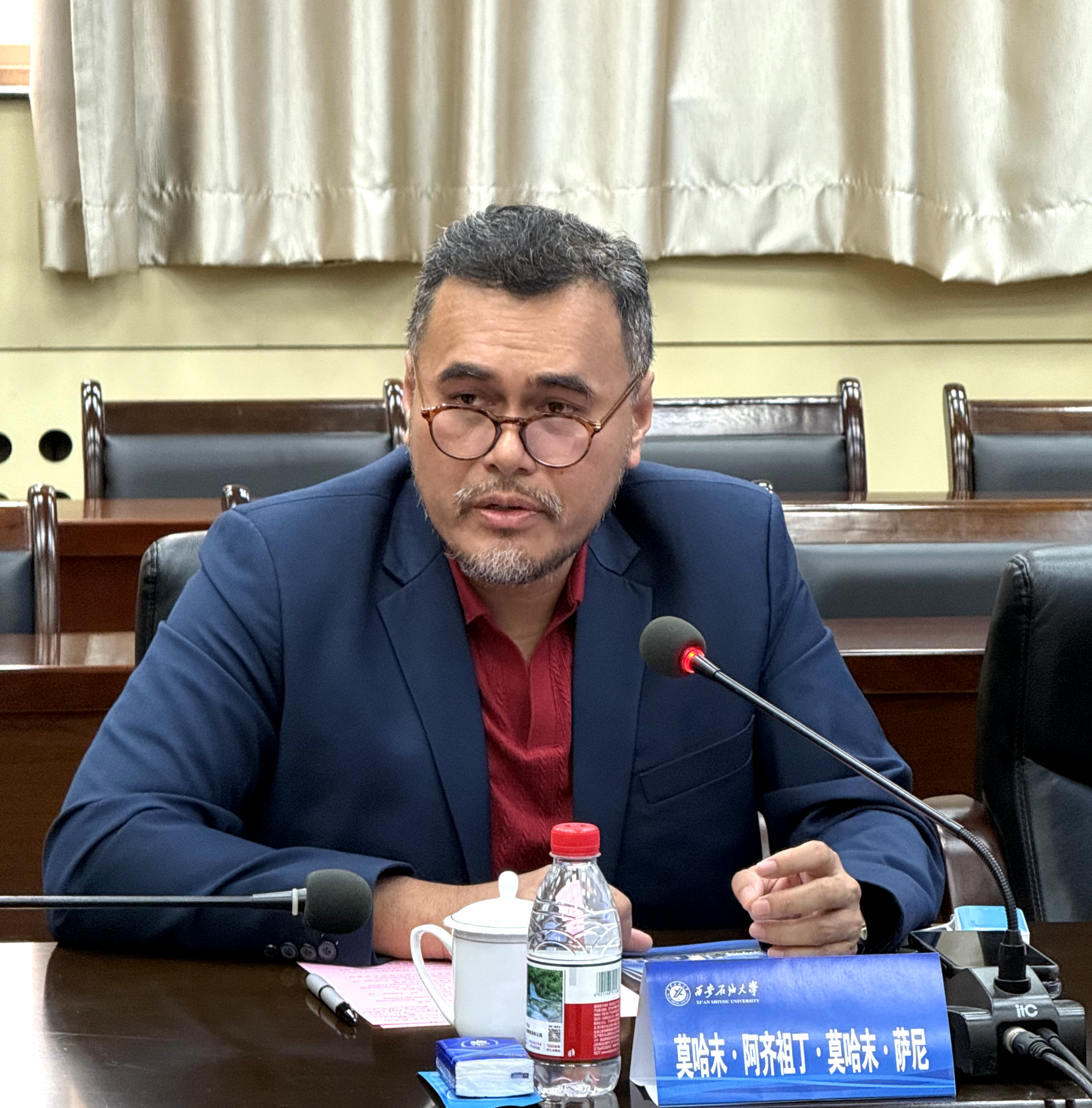 莫哈末・萨尼对学校的热情接待表示感谢。他介绍了学院办学概况、核心优势、学科布局、国际合作情况。他表示,两校专业合作契合度高、互补性强,未来能够实现师生深度对接互派,助力两国人文交流。
