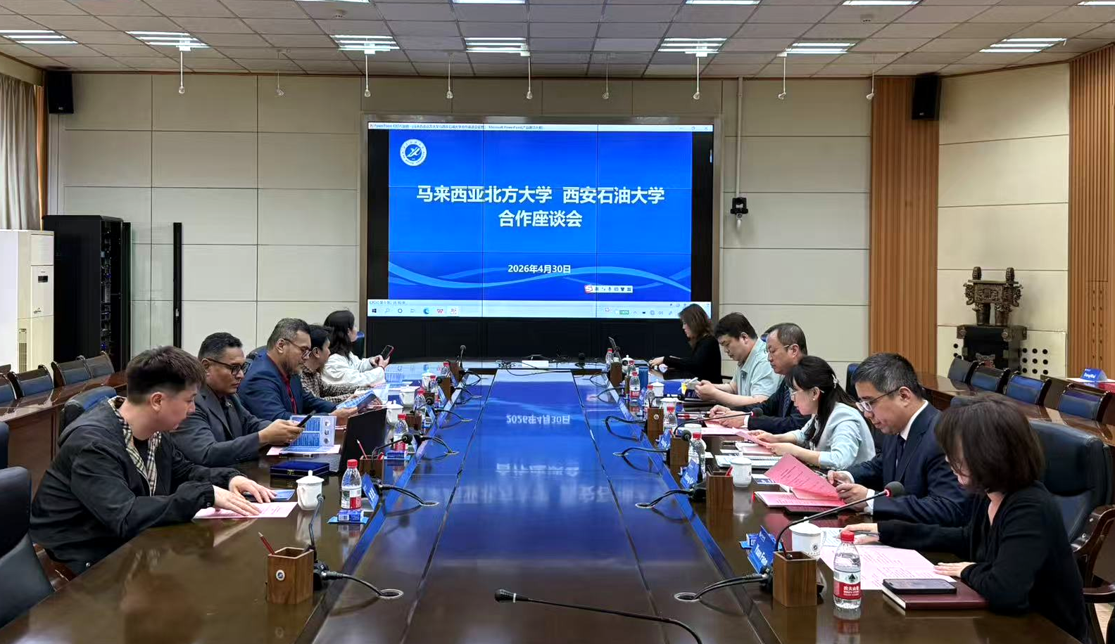 4月30日下午,马来西亚北方大学副校长莫哈末・萨尼教授率团来访我校,双方合作座谈会在雁塔校区第二会议室举行。副校长张荣军出席,国际合作与交流处、经济管理学院负责人参加座谈。