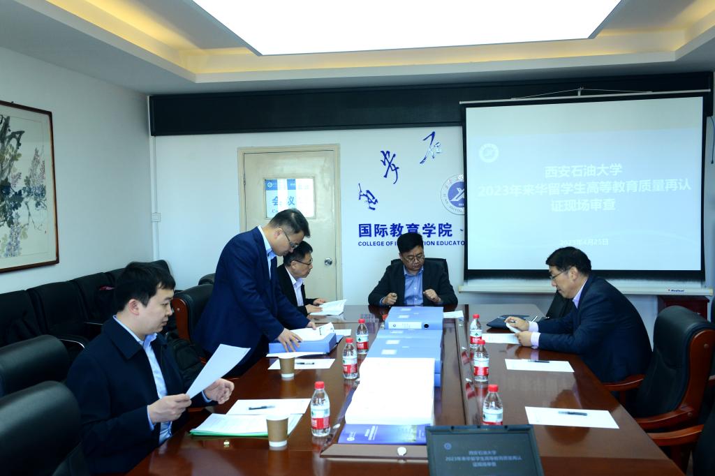 随后,专家组通过抽选名单方式,分别与分管校领导、职能部门负责人、教学院(系)负责人、教师代表、留学生代表访谈以及进行留学生线上、线下课程听课。随后,专家组考察了管网仿真实验室、现代分析测试中心、石油天然气工程实验中心等重点实验室,考察了国际学生公寓、留学生心理辅导室,现场查阅和调阅了留学生档案材料和再认证支撑材料。
