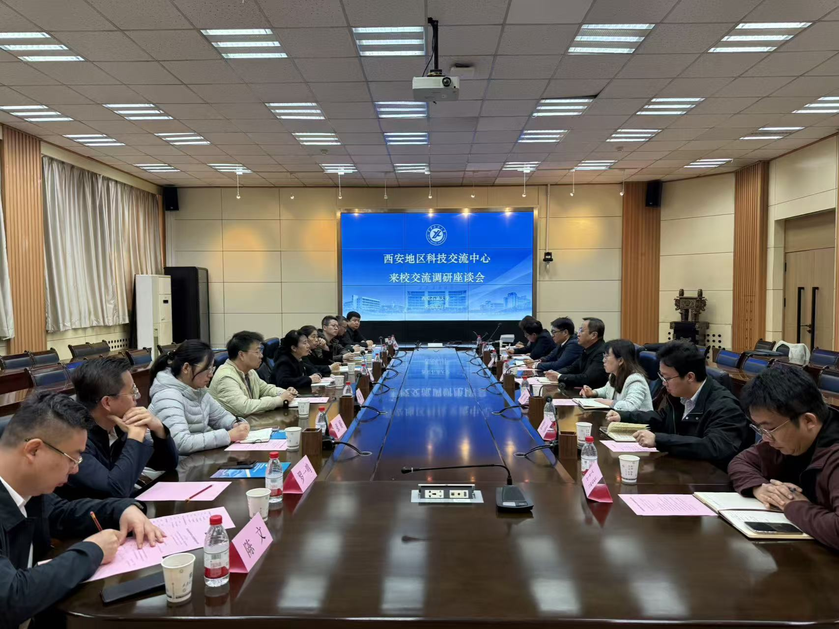 西安地区科技交流中心科技合作部、技术交流部、对外交流部,中国-上合科技创新合作中心以及西安中心筹备组,以及我校国际合作与交流处、科研处、新能源学院有关负责人参加交流调研座谈会。