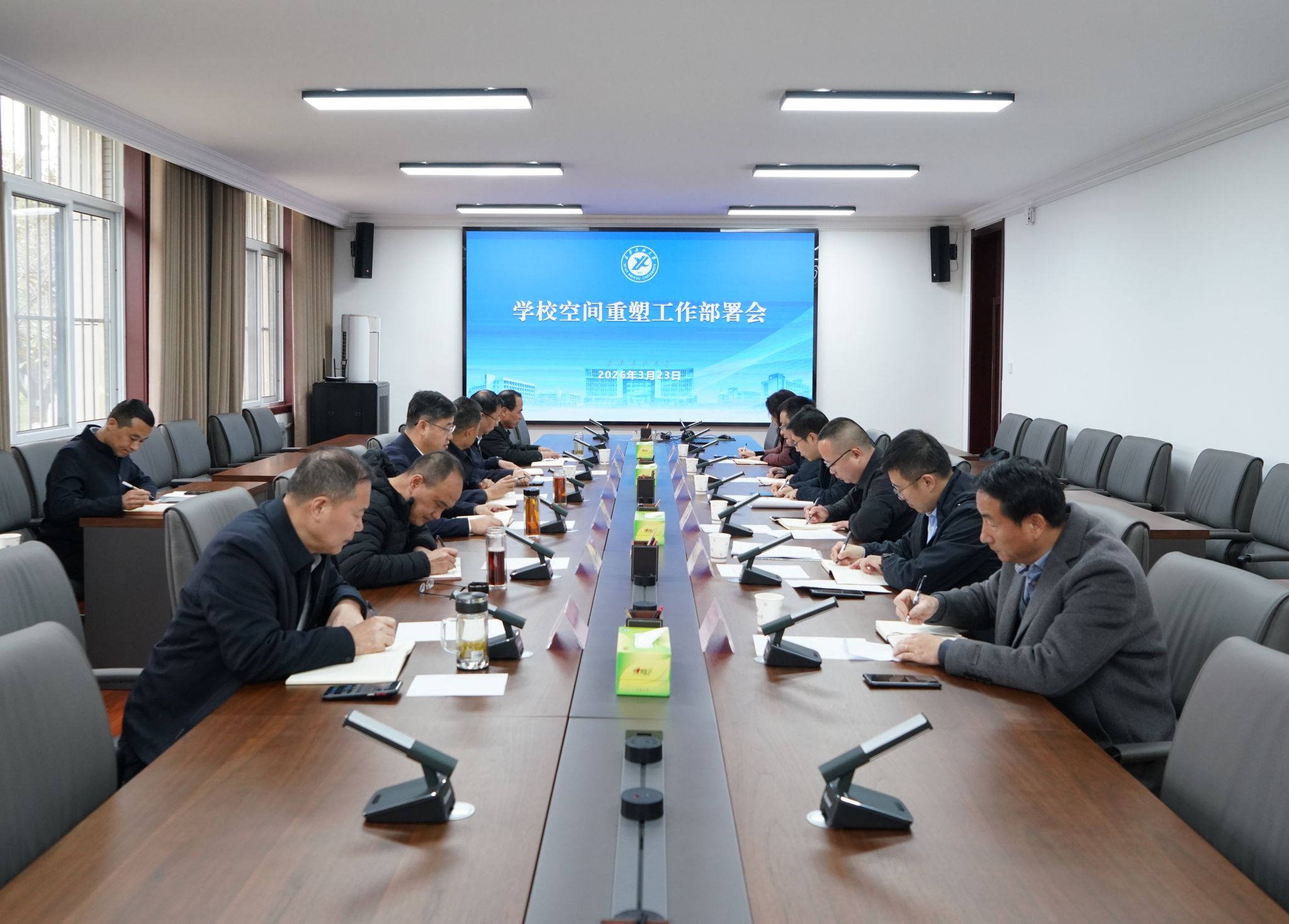 为深入推进以“人才培养体系重塑”为主题的年度重点工作部署,更好地将校园空间打造成育人场景,以空间重塑赋能人才培养,3月23日上午,校长王进富在鄠邑校区第三会议室主持召开学校空间重塑工作部署会,明确空间重塑的思路与目标,系统安排具体工作任务。校党委副书记程永清,副校长赵健、种宇宏出席会议。