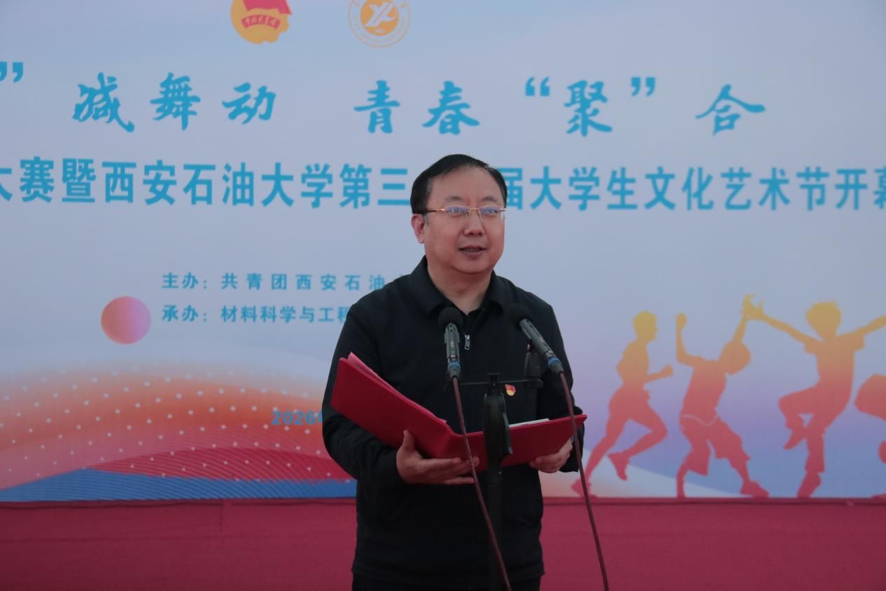 种宇宏在致辞中,向为本次活动精心筹备、踊跃参与的全体师生致以诚挚感谢。他指出,本届文化艺术节以“风采绽放西石大,青春建功‘十五五’”为主题,涵盖思想引领、科技创新、文化艺术、体育竞技、传统文化传承创新等方面,是学校深入贯彻党的教育方针、落实立德树人根本任务的重要举措。他强调,2026年学校以人才培养体系重塑为牵引,聚焦学生综合评价体系改革,加快构建多元多维、支撑学生全面发展的育人评价体系,校园文化是该体系中最具渗透力与感染力的核心组成部分,本次广场舞大赛既是本届艺术节的精彩开篇,也是对“文化西石大”建设目标的有力践行,更是学校“体系重塑年”改革精神的有效落地。种宇宏向全体同学提出三点希望:一是以美润心,在文化浸润中坚定理想信念;二是以舞聚力,在团结奋进中彰显青春担当;三是以行践知,在全面发展中书写青春华章。